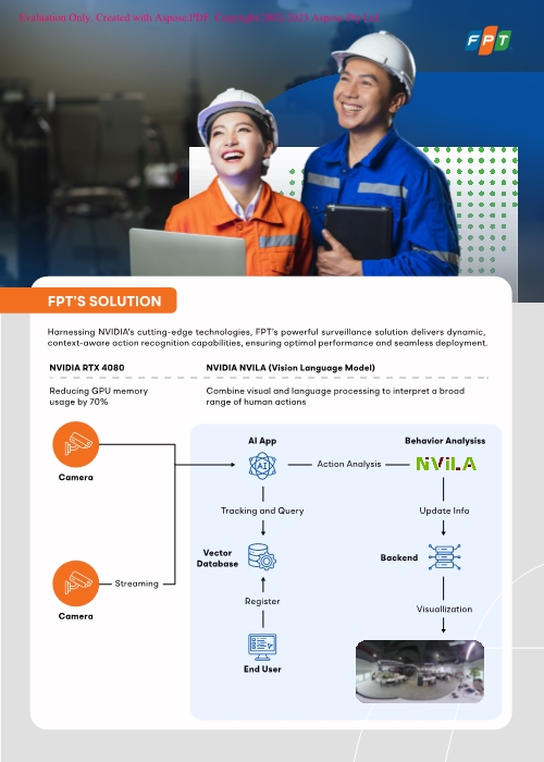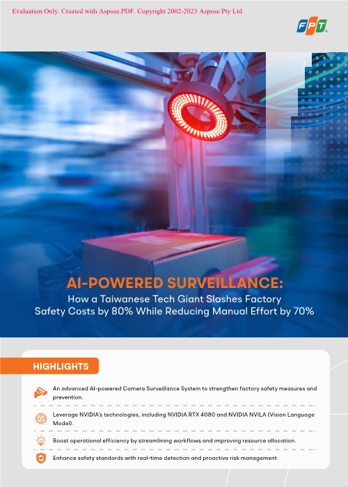 The global workplace safety market is rapidly expanding, with AI becoming essential for addressing critical surveillance limitations in high-risk manufacturing environments. Leveraging NVIDIA's RTX 4080 GPUs and NVILA Vision Language Model, FPT Software developed an advanced AI camera surveillance solution that transformed a major Taiwanese manufacturer's safety operations from reactive monitoring into proactive risk prevention. The system delivers comprehensive worker behavior tracking and real-time hazard detection across manufacturing facilities, enabling the client to slash factory safety costs by 80% while reducing manual monitoring effort by 70%.