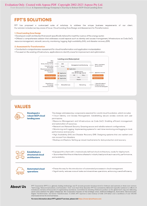 Our client, a leading energy company in Japan had previously migrated their applications to AWS without a well-defined cloud landing zone, resulting in manual and inefficient cloud operations. Hence, they sought the expertise of FPT Software to establish a comprehensive cloud landing zone design.