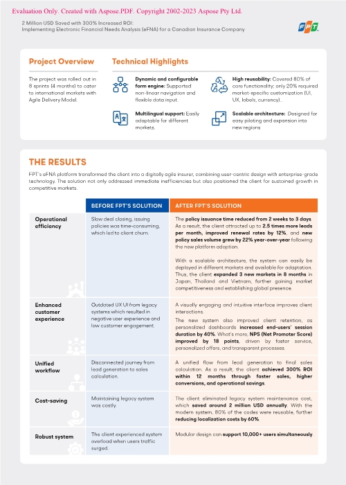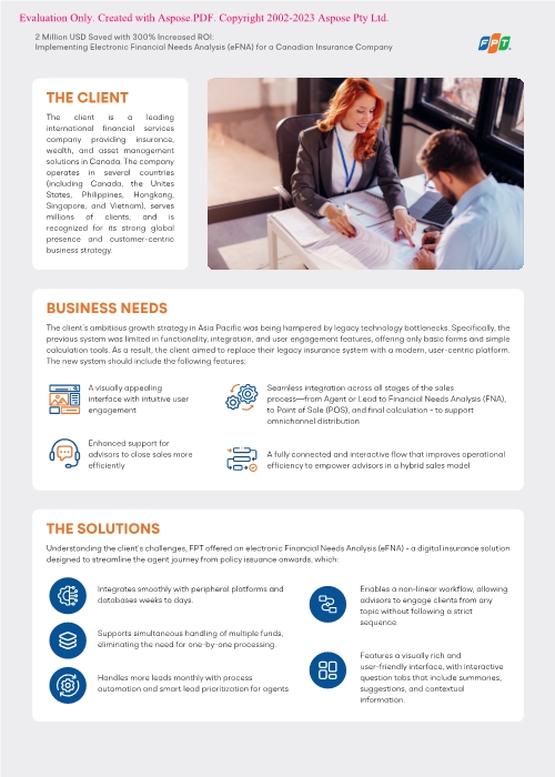 Recognizing this challenge, FPT introduced the electronic Financial Needs Analysis (eFNA), a digital solution designed to transform the insurance sales journey from policy issuance onward.