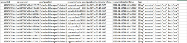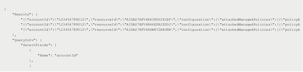 All the content we need to get is in the "Result" section. Config limits the number of records in the response, we need to use a “for” loop and “NextToken” param to get the entire records: