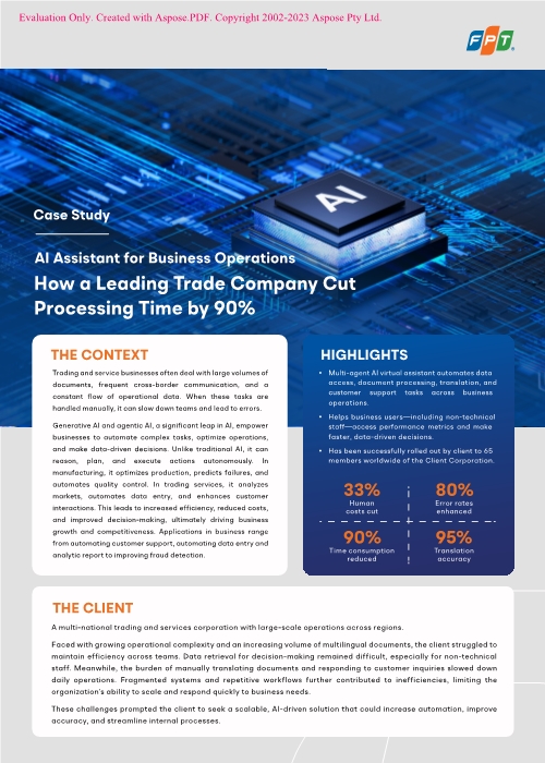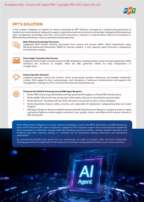 Um diese Herausforderungen zu bewältigen, setzte das Unternehmen auf IvyAgents, einen KI-gestützten virtuellen Assistenten, der von FPT und NVIDIA entwickelt wurde. IvyAgents wurde für den Einsatz in Großunternehmen konzipiert und unterstützt die Automatisierung von Prozessen, die Vereinfachung operativer Abläufe sowie ein verbessertes Datenmanagement und eine effizientere Kundeninteraktion branchenübergreifend.