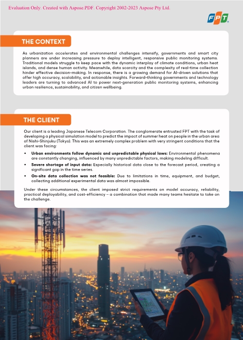 Ein hochpräzises Modell zur Simulation urbaner Hitze, entwickelt zur Vorhersage hitzebedingter Risiken in dicht besiedelten Stadtgebieten. Durch maßgeschneiderte CNN- und LSTM-Modelle, integrierte meteorologische Daten und eine vollständig automatisierte Entwicklungsumgebung erreichte die Lösung eine Genauigkeit von über 0,99 R² – bei nur sechs Bugs im gesamten Projekt. Eine skalierbare KI-Lösung für Smart-City-Anwendungen, Resilienzplanung und öffentliches Sicherheitsmanagement.