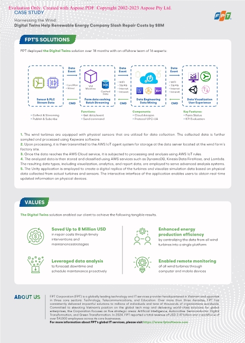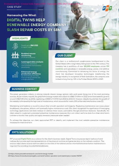 Erfahren Sie, wie FPT mithilfe von Digital-Twin-Technologie ein Unternehmen für erneuerbare Energien dabei unterstützt hat, seine Strategie für vorausschauende Wartung deutlich zu optimieren und messbare Ergebnisse zu erzielen: