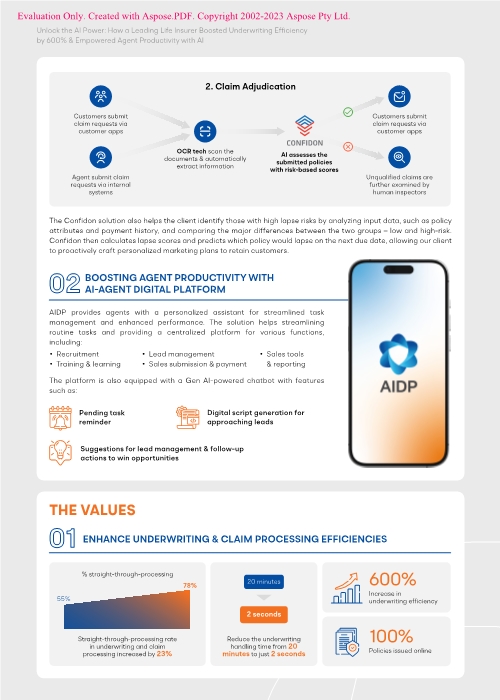 Um die Abläufe zu verbessern, setzte der Kunde auf die KI-Lösungen von FPT, darunter Confidon zur Automatisierung von Underwriting- und Schadenprozessen sowie AIDP, eine KI-gestützte Plattform zur Unterstützung der Agenten.